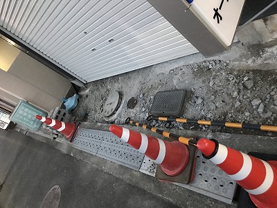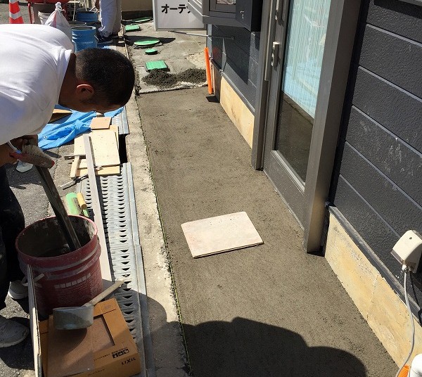 既存のタイルを捲り、新たに、INAX:外壁床タイル ロディートを使用